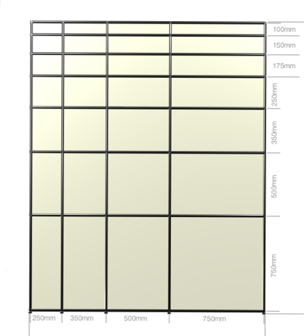 100mm, 175mm, 250mm, 350mm, 500mm, 750mm.
